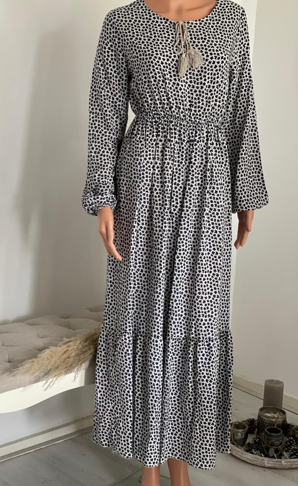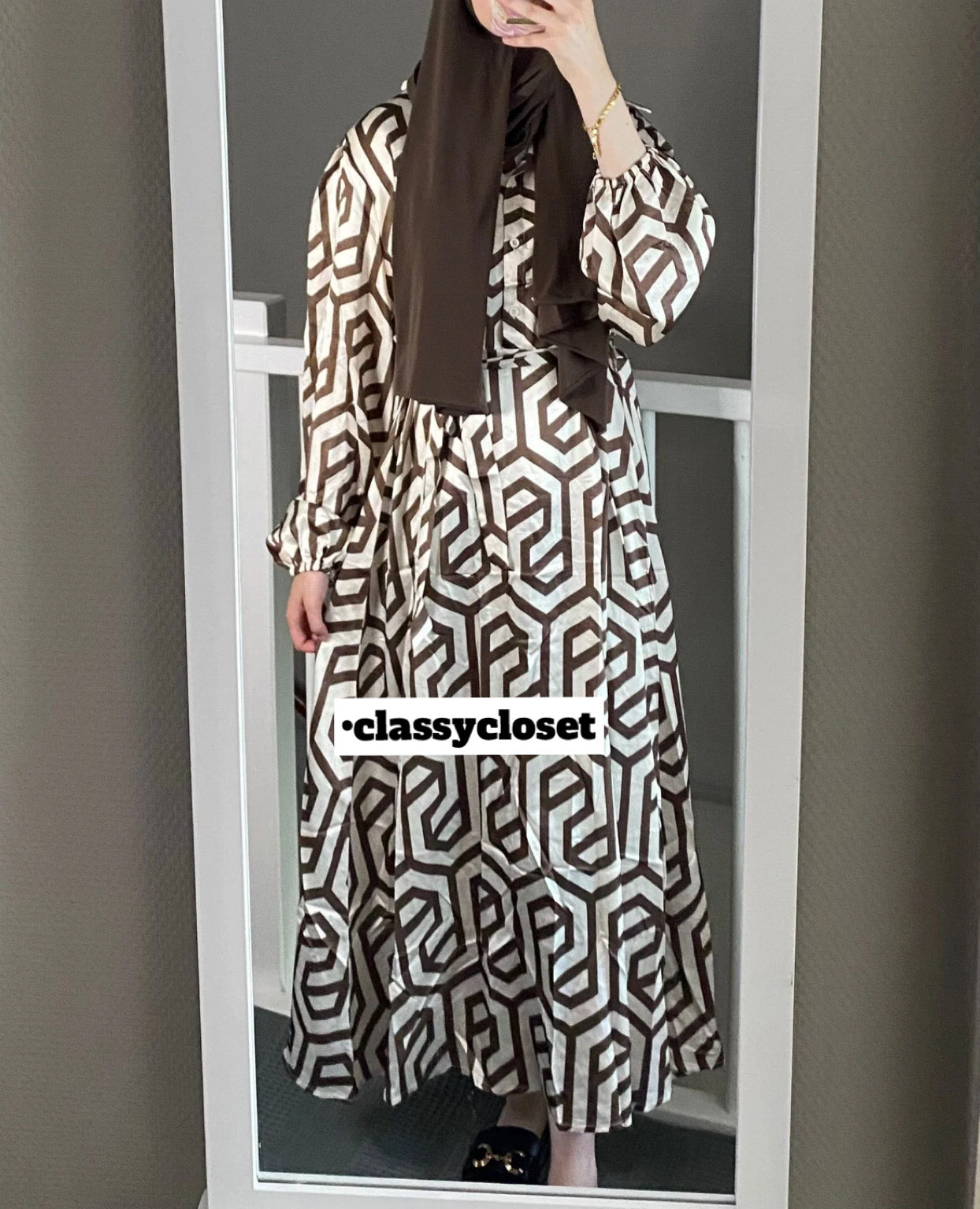 CHAIMA SATIJNEN JURK MET BORDUURSEL BLAUW