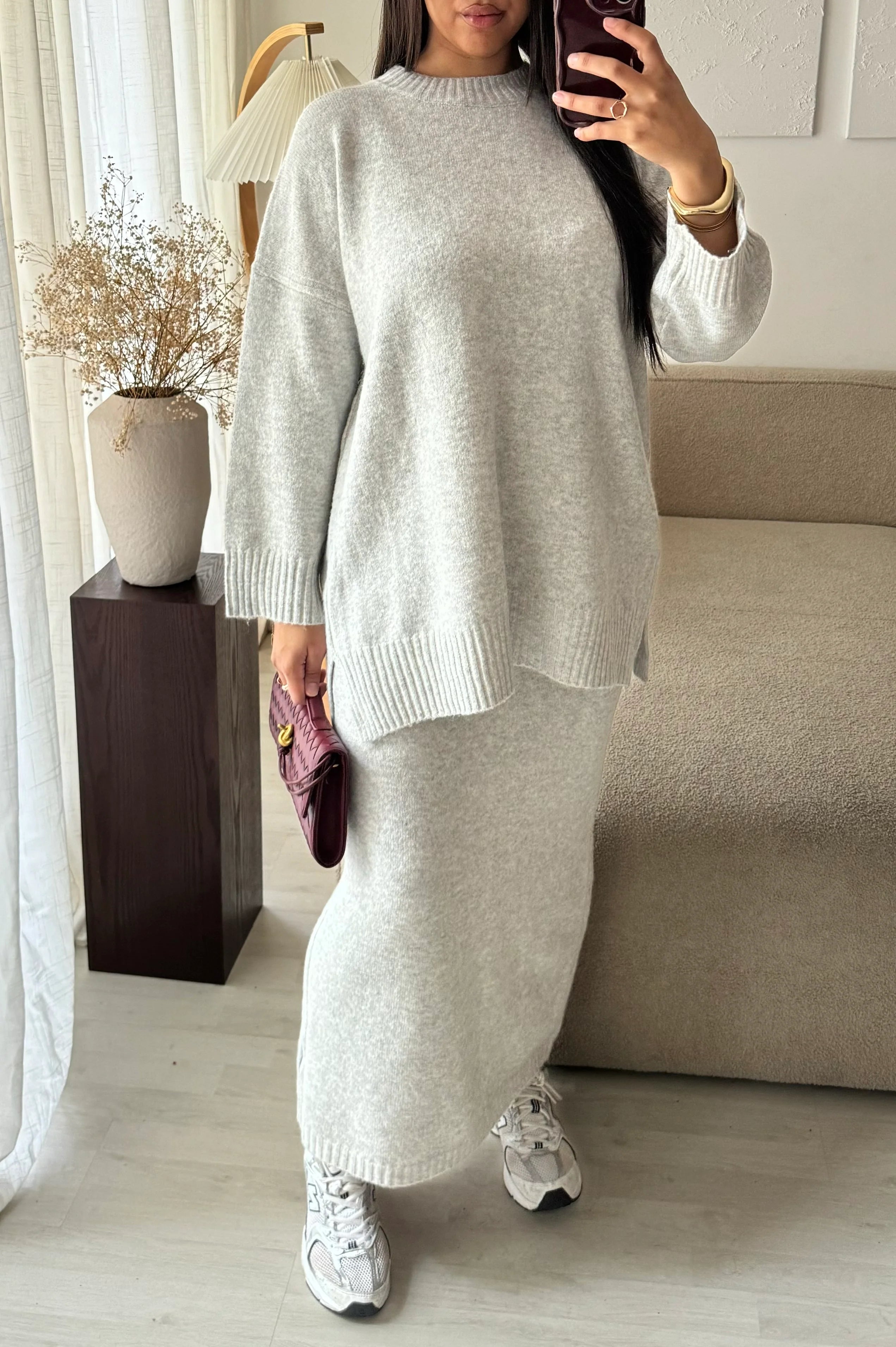 TWEEDELIGE GEBREIDE TWINSET BEIGE/TAUPE