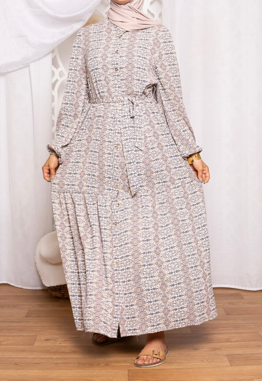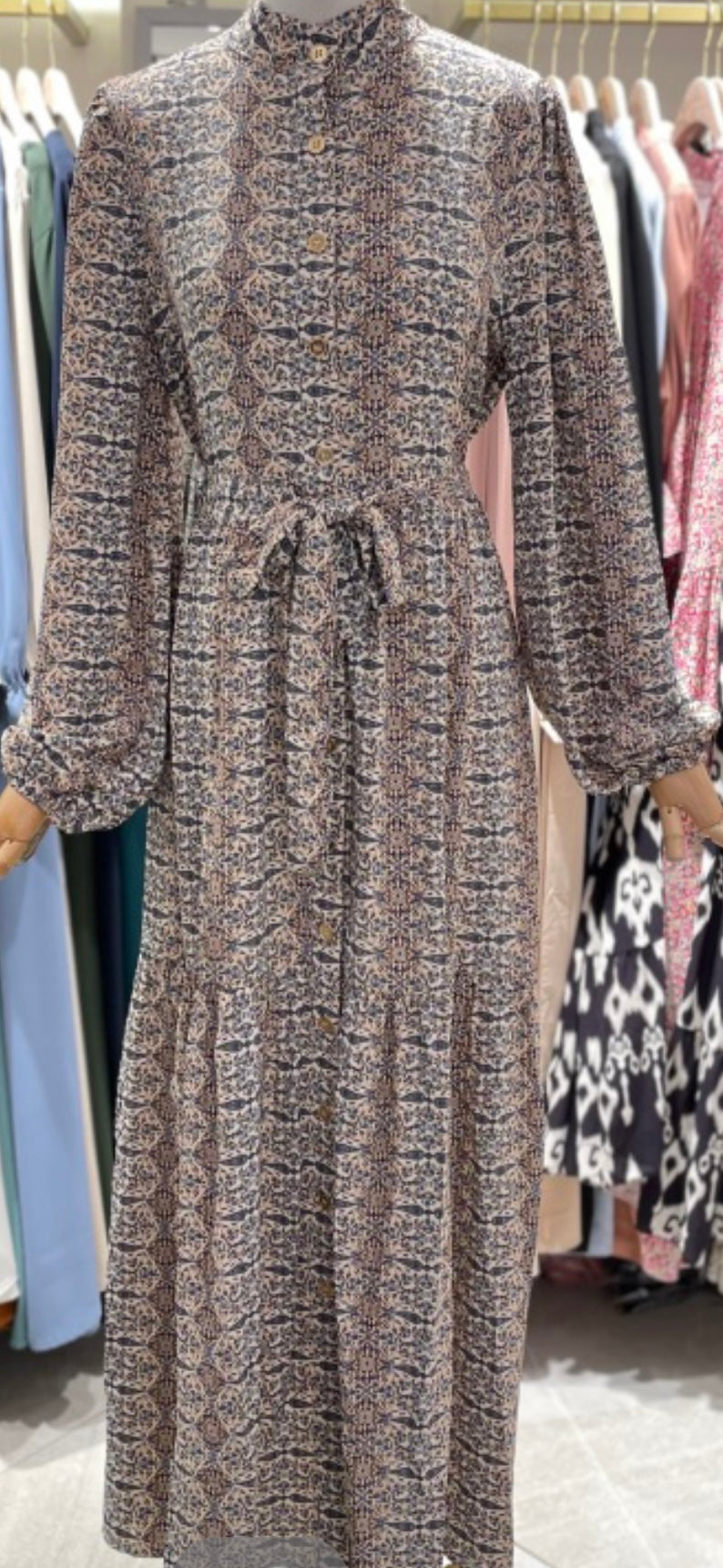 Leuk bewerkte jurk met knoopjes en ceintuur. Jurk heeft een heerlijke lichte en luchtige stof.