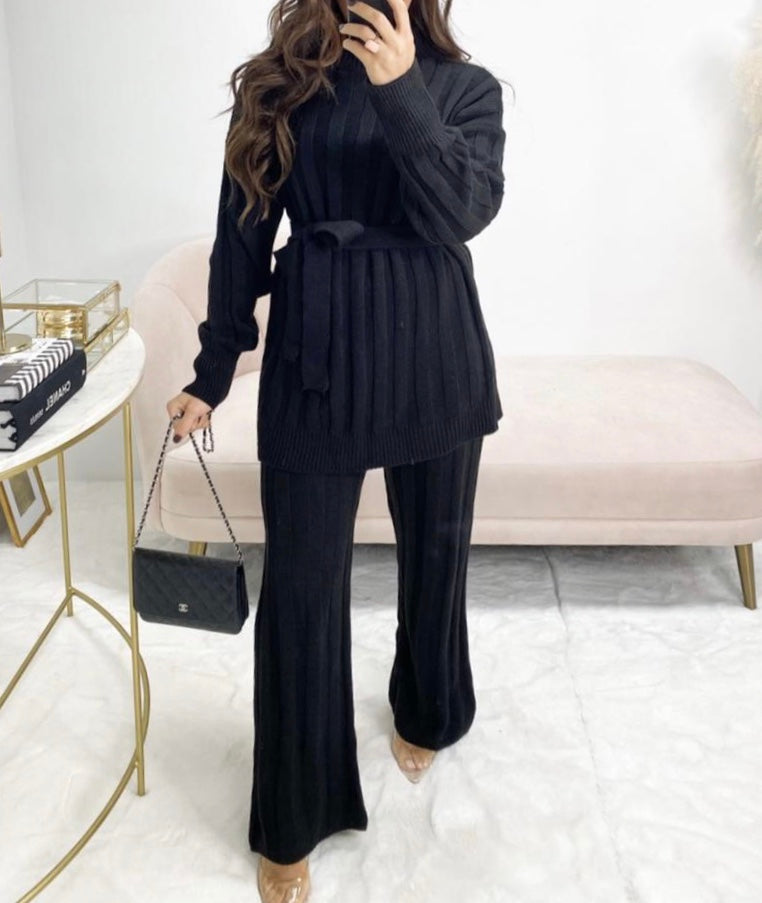 Hoe classy is deze prachtige twinset! Twinset bestaat uit een trui met ceintuur en een broek.De twinset is one size en kan gedragen worden tot 42.